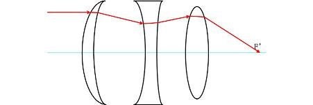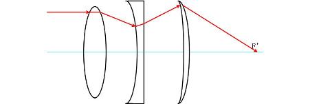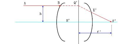 方法:在實際系統的近軸區追跡平行于光軸的光線,就可以計算出實際系統的近軸區的基點位置和焦距。