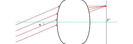 由于光學系統的口徑大小總是有限的,所以無限遠的軸外物點發出的、能進入光學系統的光線總是相互平行的,且與光軸有一定的夾角ω。