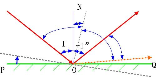 在雙平面鏡系統中,出射光線和入射光線的夾角與入射角無關,只取決于雙面鏡的夾角α。