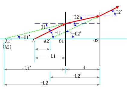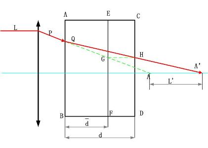 2、物理意義:在近軸區,平行平板的軸向位移只與其厚度d和折射率n有關,與入射角無關。因此,平行平板在近軸區以細光束成像是完善的。
