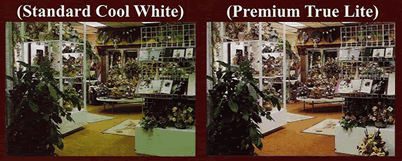 由圖示可見 , 三基色熒光燈管主要含有 RGB 三種光譜成份,它的顯色指數一般為 70%-80% ,只能用于普通照明,不能用來觀察顏色。多基色熒光燈管除了含有 RGB 三種光譜成份外,還含有一些其它的光譜成份,它的顯色指數一般為 90% 左右,可以用在服裝商店,珠寶店,超市進行一般的顏色觀察。全色譜熒光燈管包含有大部份的太陽光譜成份,它的顯色指數一般為 98% ,可用作專業的色彩匹配,是觀察顏色的理想的光源。
