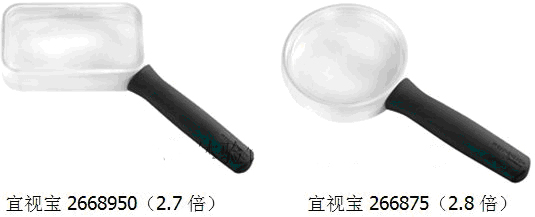 在這里,筆者給看官介紹兩款等光程放大鏡,皆為宜視寶放大鏡(等光程技術代表著德國宜視寶尖的端鏡片技術)。等光程放大鏡放大效果無失真,影像不會變形或扭曲,特別適用于長時間閱讀或者長時間觀察的用戶,眼鏡不容易產生疲勞 。