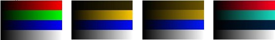 色盲是嚴重異常色覺者,色盲可分為全色盲和局部色盲,其中,全色盲患者視網膜沒有椎體細胞,只有桿體細胞,因此只能感覺到黑白的灰階變化;局部色盲又稱為二色覺者,局部色盲又可分為紅——綠色盲、藍——黃色盲。紅——綠色盲不能區分紅色和綠色,又分為紅色盲和綠色盲,分別稱為甲型色盲、乙型色盲,藍——黃色盲稱為丙型色盲,不能區分藍和黃,僅對紅色、綠色產生色覺。正常色覺與三者色盲看到的紅、綠、藍和白的情況如下圖所示。