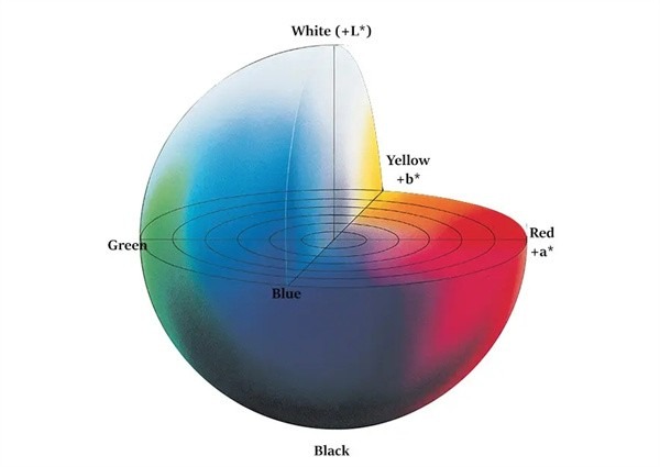 色差采用的符號是ΔE,由顏色空間中兩個色點間的距離表示,通過計算后可以得到其數值。由Judd建立的NBS單位,現已被廣泛采用。