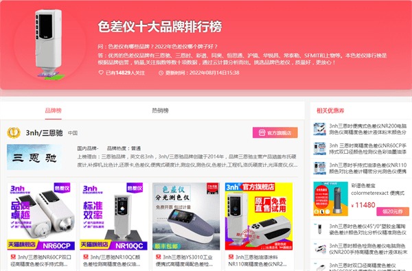 關于色差儀的品牌排行,有很多不同的聲音和意見,以下列舉兩個平臺的排行,主要以國內的品牌為主。