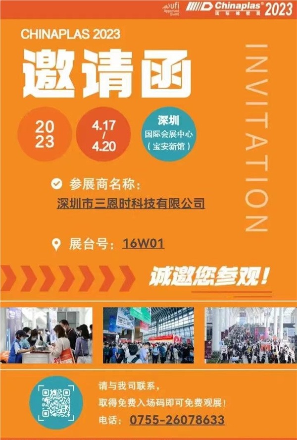 第三十五屆中國(guó)國(guó)際塑料橡膠工業(yè)展覽會(huì)(Chinaplas 2023 國(guó)際橡塑展)即將于4 月17-20日在中國(guó)深圳舉辦。三恩時(shí)可以提供顏色、光澤度、透光率等的檢測(cè)方案和設(shè)備,助力塑料橡膠行業(yè)的良性健康發(fā)展,誠(chéng)摯地邀請(qǐng)您在展會(huì)期間蒞臨參觀(guān)我們的展臺(tái)。