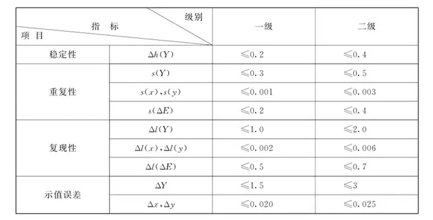 3. 復現(xiàn)性:△l(Y)|≤1.0;Δl(x),Δl(y)≤0.002;△l(ΔE)|≤0.5