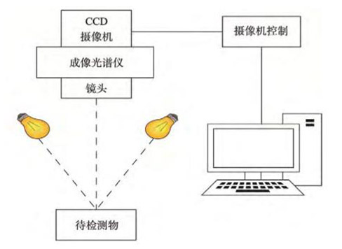 高光譜成像系統主要由光源、CCD攝像機、成像光譜儀、鏡頭、圖像采集卡、計算機及控制裝置等組成,見下圖1。其最主要的工作部件是成像光譜儀,它是一種新型傳感器,于20 世紀80年代初發展起來。該光譜儀最重要的特點在于波段多且寬度窄,使得高光譜成像儀能探測到別的寬波段無法探測到的物體,光譜響應范圍更廣,光譜分辨率更高,能夠更加精細地發現被探測物的微小特征,更重要的是它可以提供空間域和光譜域信息的結合,也就是“圖譜合一”,但同時也存在著數據量大、冗余信息多的特點。