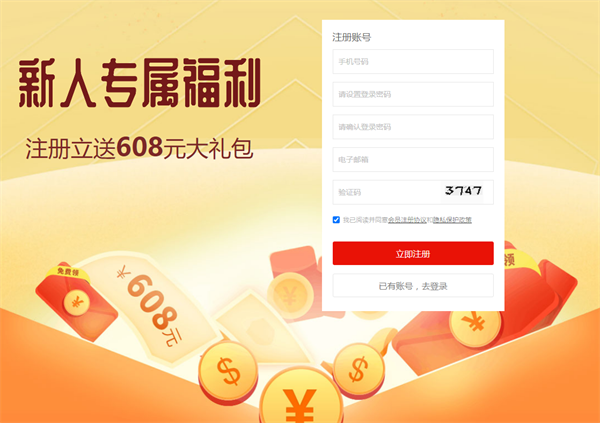 2. 點擊網頁左上角“免費注冊”,即可進入活動頁面