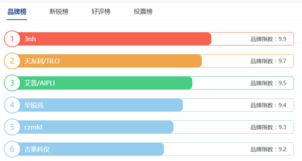 上榜理由:3nh三恩時是國內專業的測色色差儀研發、生產廠家,旗下產品有TS系列分光測色儀、YS系列光柵式分光測色儀(便攜式/臺式)、NS系列分光色差儀、NH系列便攜式電腦色差儀和NR系列手提式色差。