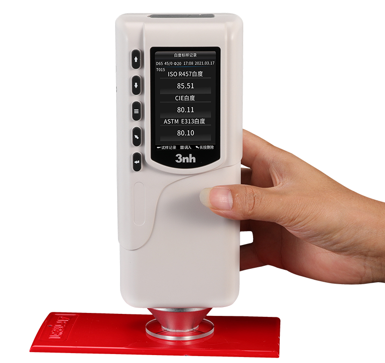 NR4520白度計采用了先進的測量技術,確保了測量的準確性和穩定性。它擁有一個標準白板,這個白板是白度計的基準。通過與標準白板進行比較,我們可以得知被測物品的白度值。