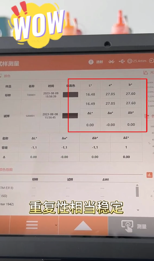 4. 開始測量:按下測色儀的測量按鈕,儀器會自動進行光譜掃描和顏色分析。幾秒鐘后,測色儀會顯示出咖啡的色值,如L*a*b*值、色調、飽和度等。