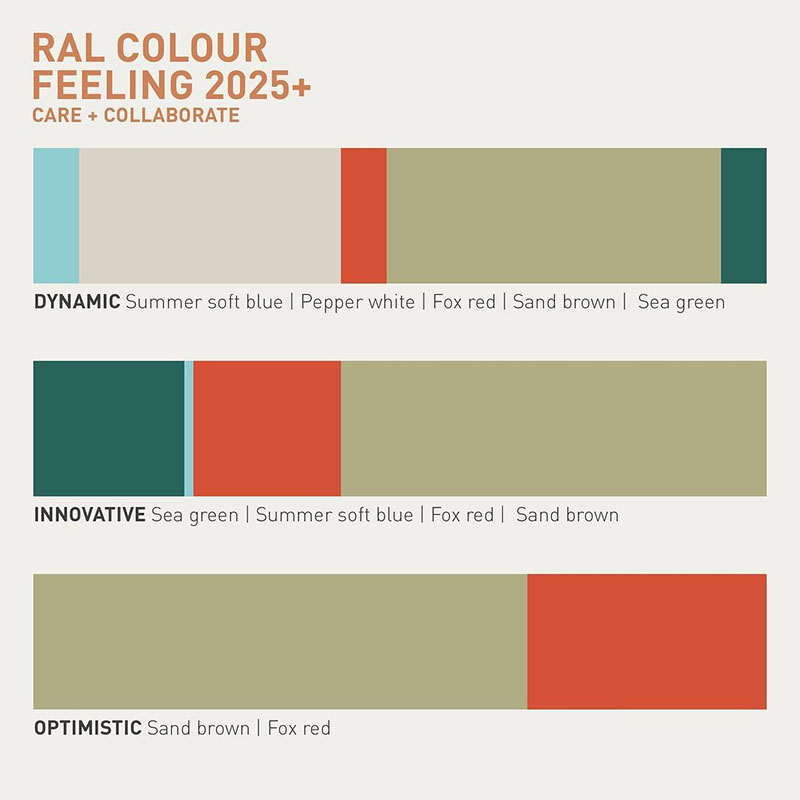 勞爾RAL色彩趨勢2025+以關愛+協作為主題,適用于當代設計和建筑,在建筑、工業、產品、貿易和工藝等領域。一起來感受這些迷人的色彩!