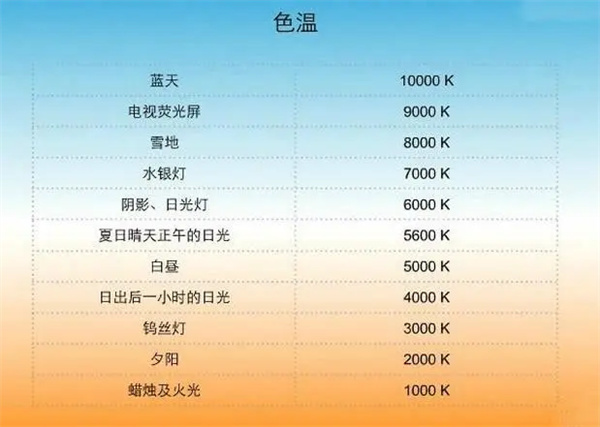 色溫可以根據(jù)其數(shù)值大小進(jìn)行分類,一般分為以下幾類: