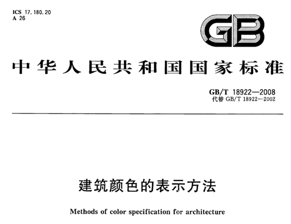 中國(guó)建筑色卡的國(guó)家標(biāo)準(zhǔn),正式編號(hào)為GB/T 18922-2008《建筑顏色的表示方法》,是中國(guó)建筑領(lǐng)域色彩標(biāo)準(zhǔn)化的一項(xiàng)重要成果。本文對(duì)該標(biāo)準(zhǔn)進(jìn)行了簡(jiǎn)單介紹。