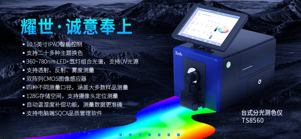 廣東三恩時作為國內知名的色差儀品牌,廣東三恩時科技有限公司產品系列有:TS系列分光測色儀、YS系列光柵式分光測色儀(便攜式/臺式)、NS系列分光色差儀、NH系列便攜式電腦色差儀和NR系列手提式色差儀;憑借其卓越的性能和穩定的測量結果,在業界享有盛譽。其產品廣泛應用于紡織、印刷、塑膠等多個行業,深受用戶信賴。