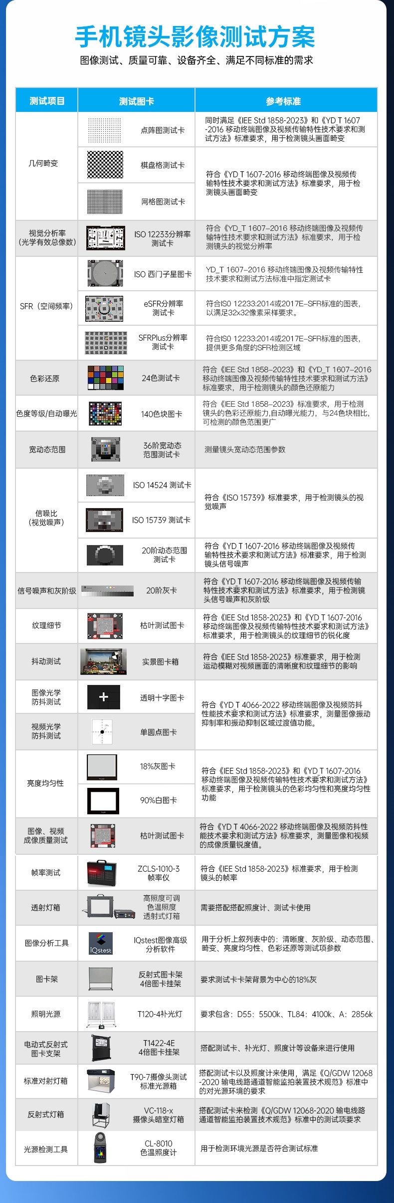 手機(jī)攝像頭作為現(xiàn)代智能手機(jī)的核心功能模塊,其性能表現(xiàn)直接影響用戶體驗(yàn)。本文將系統(tǒng)介紹手機(jī)攝像頭的測試方案與行業(yè)標(biāo)準(zhǔn),涵蓋光學(xué)性能、電氣安全、環(huán)境適應(yīng)性等關(guān)鍵測試項(xiàng)目,以及國內(nèi)外主流標(biāo)準(zhǔn)體系,為手機(jī)制造商、檢測機(jī)構(gòu)和消費(fèi)者提供全面的技術(shù)參考。