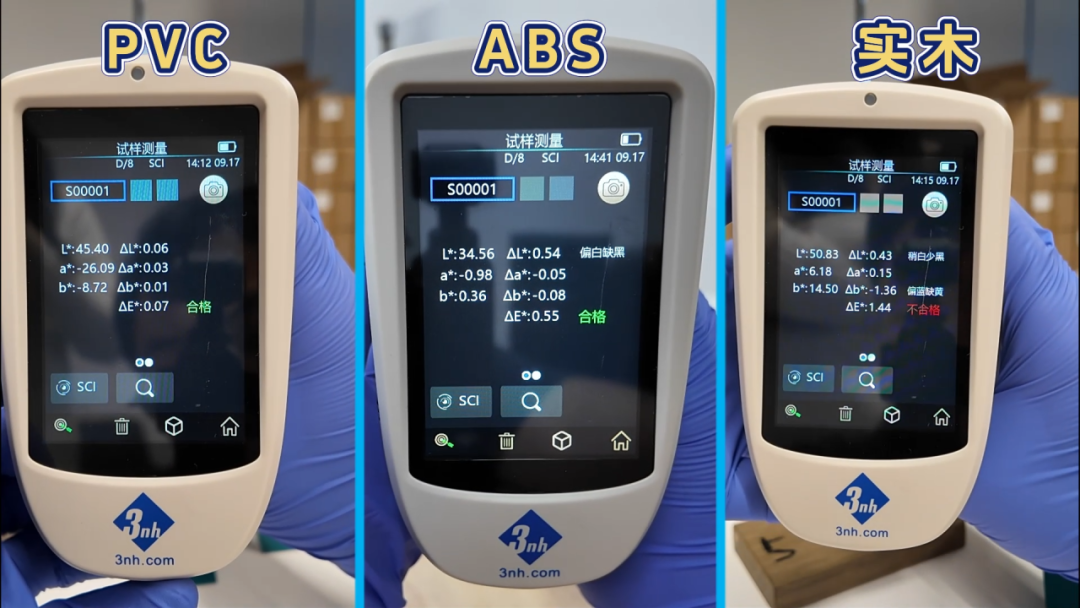 三恩時便攜式分光測色儀,可以直接測定△Eab*值,通過設置容差,儀器會直接判定封邊條的顏色是否合格。在封邊條的來料檢測、成品檢測以及封邊條和板材的配色中均可發(fā)揮重要作用。