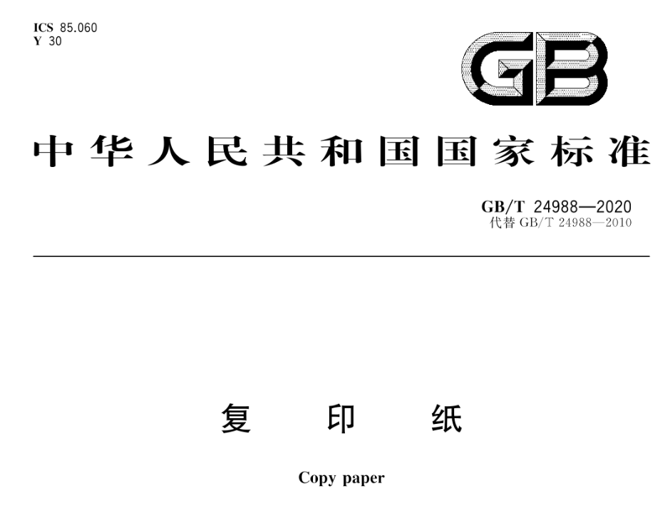 GB/T 24988-2020是中國復印紙行業的國家推薦性標準,于2021年2月1日正式實施,代替了之前的GB/T 24988-2010標準。這一標準由全國造紙工業標準化技術委員會歸口,主管部門為中國輕工業聯合會,并由多家行業領先企業共同起草。