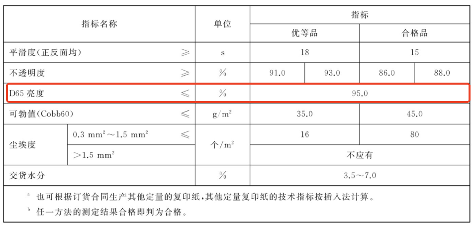 值得注意的是,95%的上限是針對普通復印紙的要求,而標準同時涵蓋了對彩色復印紙的規定,確保不同種類產品都有相應的質量規范。