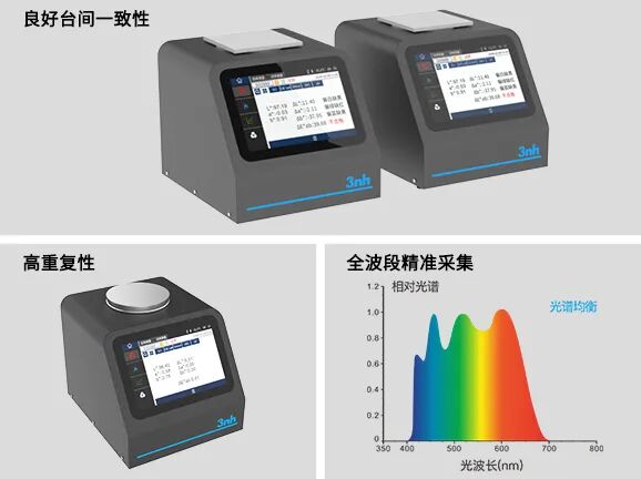 PS809 具備ΔE*ab≤0.03的超高重復性、臺間差≤0.35的優異一致性,搭配納米集成光譜器件,測量時間僅需約 1 秒。7 英寸觸控大屏、1000 條標樣 + 30000 條試樣存儲、全平臺軟件支持,輕松實現工業化大批量生產的品質管控與數據追溯。