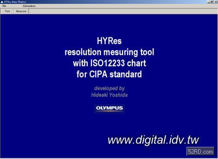 以解像力測試來說,日系和美系的標準同樣根植于 ISO 12233 之上。可是在應用上卻有顯著的不同,東西方文明本就存在著差異,何者好用耐用,其實也是因人而異的問題。首先介紹日系的解像力檢測軟件 HYRes 3.1,這套軟件是 CIPA 日本相機工業協會制訂的檢測標準 ,協同 Olympus 公司共同開發,使用上如同日本的產品一樣,相當簡單且一目了然。