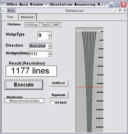 分辨率測試采用了國際標(biāo)準(zhǔn)的ISO12233分辨率卡進(jìn)行測試,采用了統(tǒng)一拍攝角度和拍攝環(huán)境,而分辨率的計(jì)算使用了奧林巴斯開發(fā)的HYRes軟件,分開垂直分辨率和水平分辨率兩部分進(jìn)行。