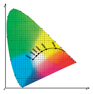 光源的色溫是以光源發光時所顯現的顏色與一個絕對黑體被高溫燃燒時所顯現的顏色相一致時的燃燒溫度來定義的,它的單位是絕對溫度Kelvin(K)。K值越高,顯現的顏色就愈趨向于白藍色;K值越低,顯現的顏色就愈趨向于黃紅色。