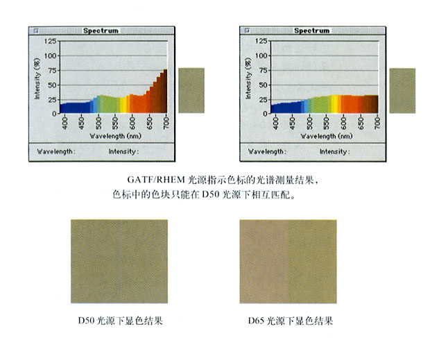 色度計(jì)不能探測(cè)出同色異譜。它們只能夠告訴你在特定的照明條件下兩個(gè)顏色樣品是否匹配,但是它們沒法說(shuō)清這種匹配是不是在這個(gè)特定照明和觀察條件下的同色異譜,也不能告訴你兩個(gè)樣品是否真的是具有相同的光譜特性,是否能夠在所有照明體下都是相互匹配的。幸運(yùn)的是,對(duì)于大多數(shù)色彩管理用途來(lái)說(shuō),在一種照明條件下計(jì)算顏色匹配已經(jīng)足夠了。