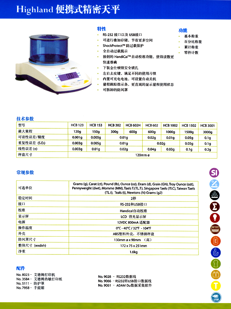 英國ADAM艾德姆1/1000g高精度便攜式電子天平HCB123,性價(jià)比更高的電子天平。