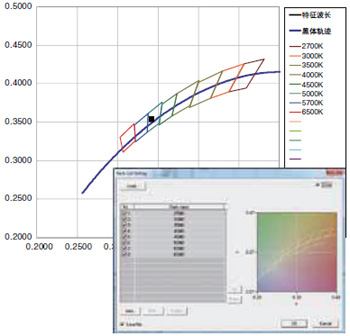 針對(duì)LED行業(yè)普遍關(guān)注的按顏色分級(jí)的問(wèn)題,CL-500A配備軟件可提供LED色度分級(jí)的功能。