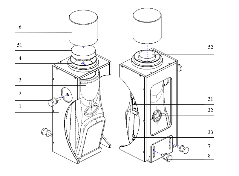 4、根據(jù)樣品特點(diǎn),選取適當(dāng)容量的樣品杯(Φ60mm樣品杯51、Φ35mm樣品杯52均可使用),將待測(cè)樣品放入樣品杯,然后將裝有待測(cè)樣品的樣品杯的放入黑腔內(nèi),蓋上黑腔蓋板6,按照測(cè)色儀的測(cè)試方法進(jìn)行色度數(shù)據(jù)測(cè)量。