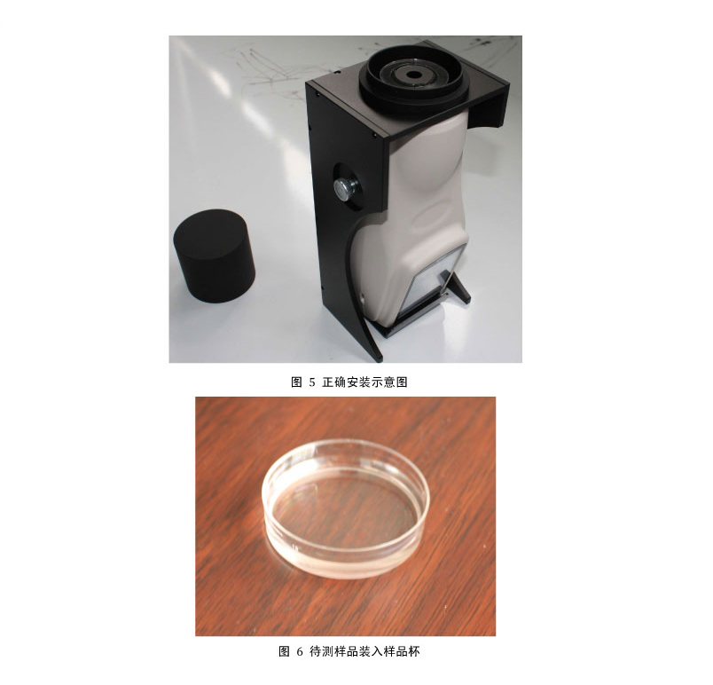 注意:確保測(cè)色儀固定穩(wěn)固,確保測(cè)色儀測(cè)量口徑一側(cè)的臺(tái)階面緊貼黑腔底板的底面。