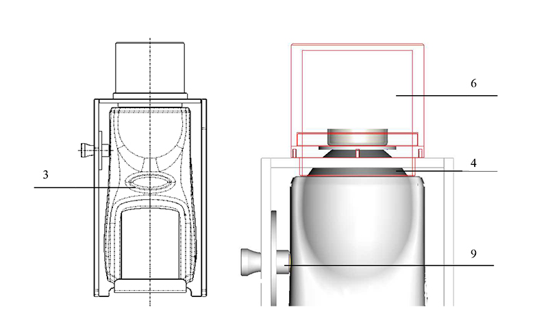 2、輕輕松開手?jǐn)Q螺絲8,使固定板7沿腰形孔可上下移動(dòng),使固定板7盡量處于下方位置;松開手?jǐn)Q螺釘2,使得手?jǐn)Q螺釘2的前端面稍低于螺釘固定座9的端面。