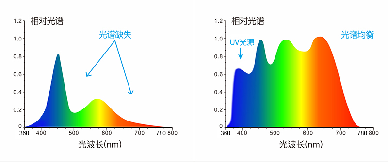 2、采用全波段均衡LED光源+UV光源